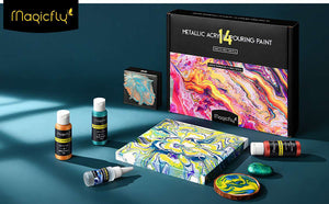 - 14 Vibrant Metallic Colors: Magicfly pouring paint includes 14 vibrant metallic colors with a shimmering under glow.